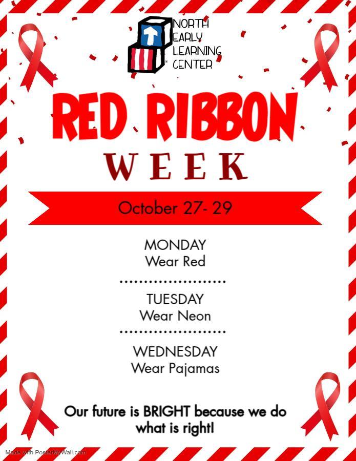Little Mustangs Red Ribbon Week is coming up, dress up on these days next week to show your support for staying drug free!